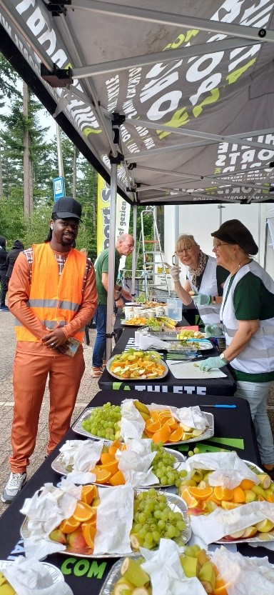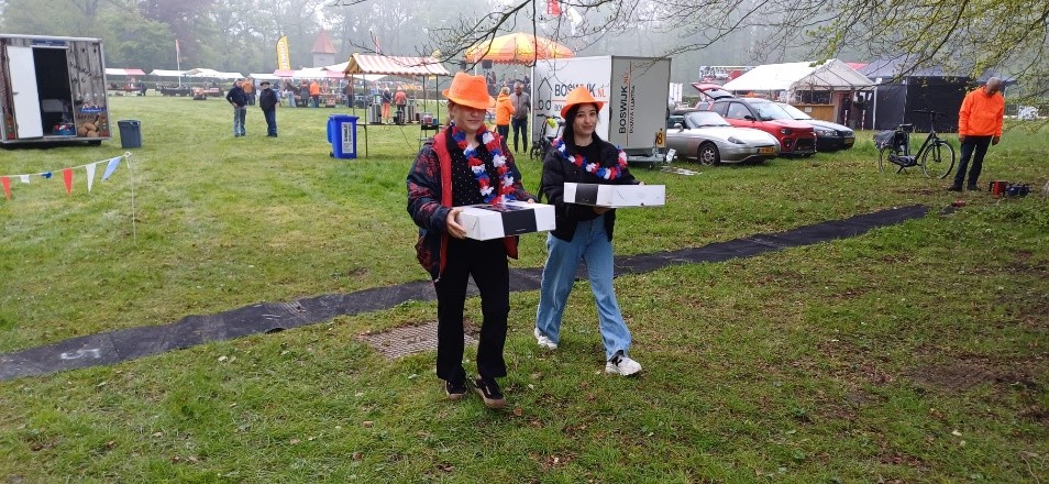 Meerdere keren per jaar verrichten wij echt een huzarenstukje door meerdere mensen tegelijk op een activiteit te plaatsen. Dat vergt veel voorbereiding en de inzet van AZC vrijwilligers plus vrijwilligers uit de gemeente. We werken mee in 2 dorpen: Driebergen en Doorn. Een maand te voren starten we met het opleiden van verkeersregelaars. De dag ervoor gaan we aan de slag met opbouw van terreinen en terrassen: hekwerken plaatsen, luchtkussens opzetten, grote parasols op terrassen neerzetten, noem maar op. Op de dag zelf delen we koffie en gebak uit, regelen het verkeer bij de toegangen van het feestgebied, B&W laten zich op de foto zetten met ons en als de muziek stopt bouwen we ’s avonds weer af. Hoe leuk wil je het hebben. En een mooie gelegenheid om iets uit te leggen over het koningshuis en onze monarchie en dat interesseert veel AZC bewoners.